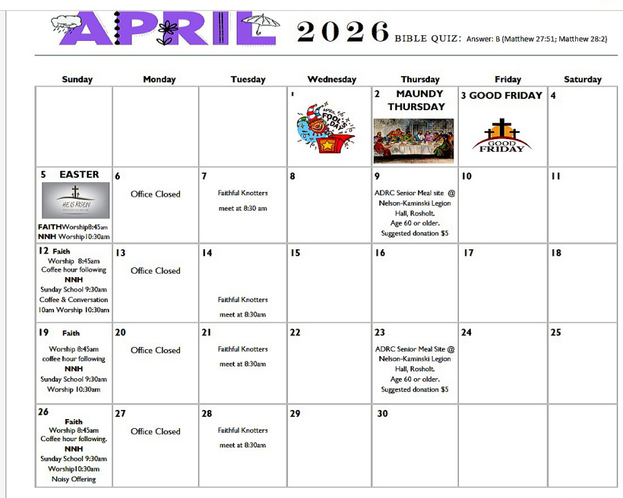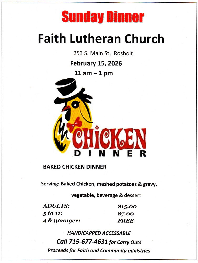 Items are delivered to our Rosholt Food Pantry about once a month, then distributed to those in need in our community.